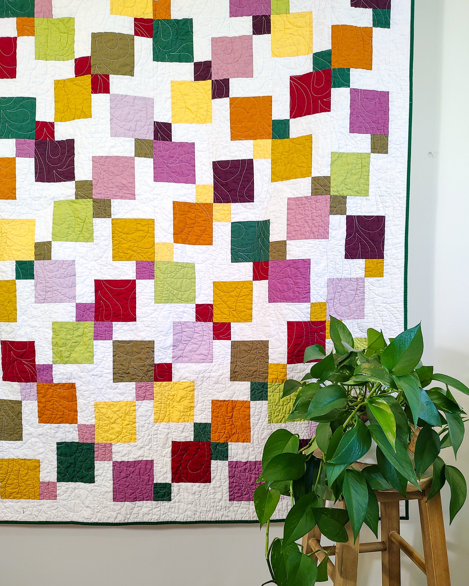 An accented version of First Crush using the same colorway as the scrappy version, but arranged in a rainbow gradient!