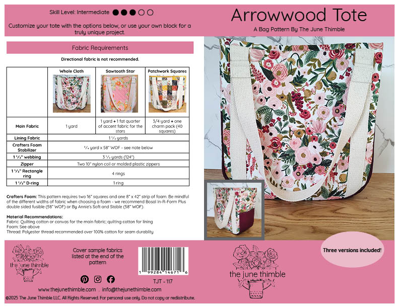 Designed to be the "gateway bag" for quilters curious about bag making, the Arrowwood packs a lot of features into a thoughtfully constructed and friendly bag pattern.