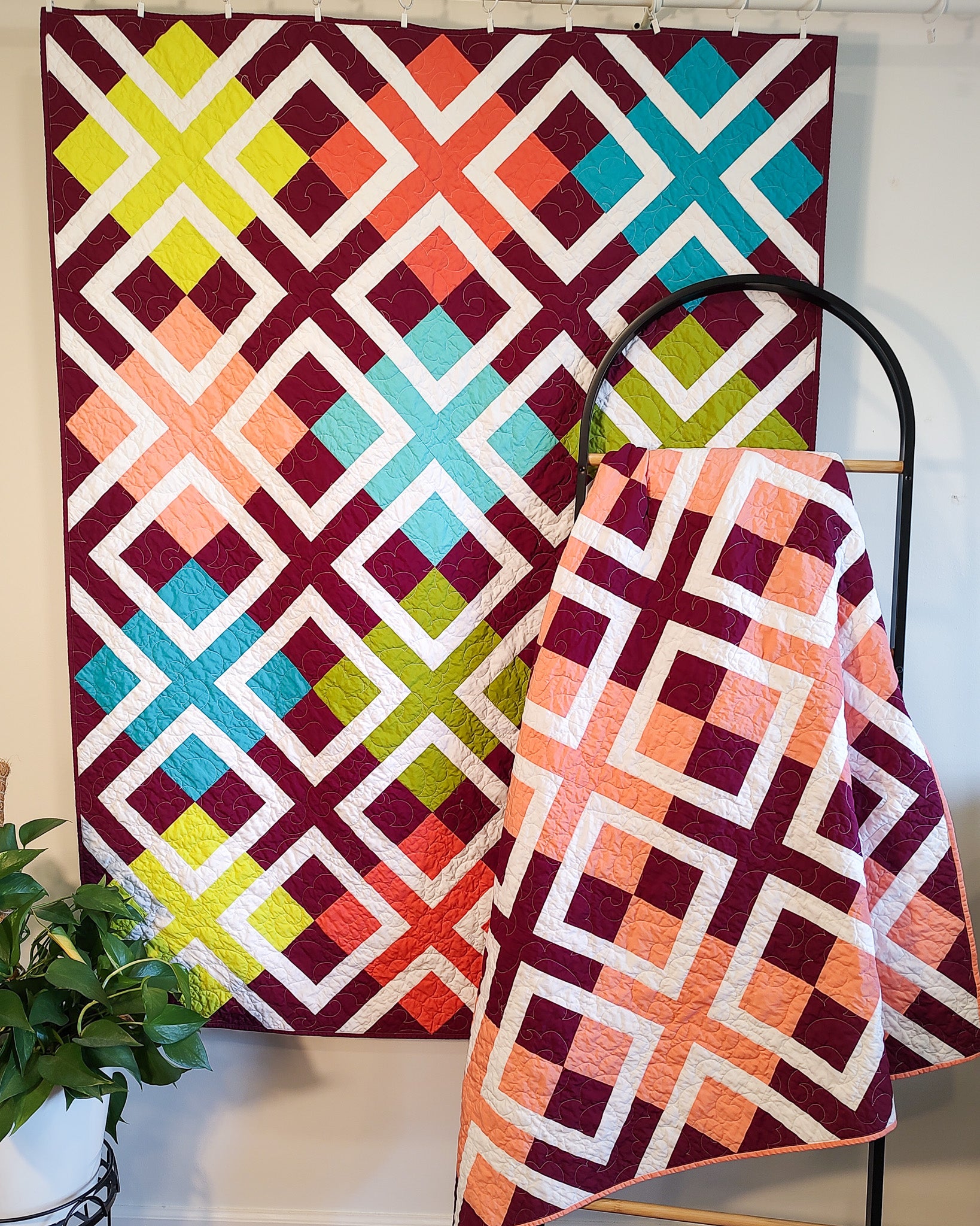 Simple to construct and endlessly variable - this pattern comes in a scrappy version or a uniform version with matching blocks.