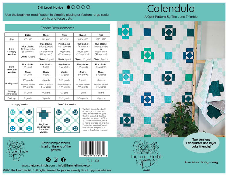 How about 20 quilts in one pattern?! Calendula is a beginner friendly pattern that comes in two variations, five sizes, and either variation can be modified to a solid plus block.